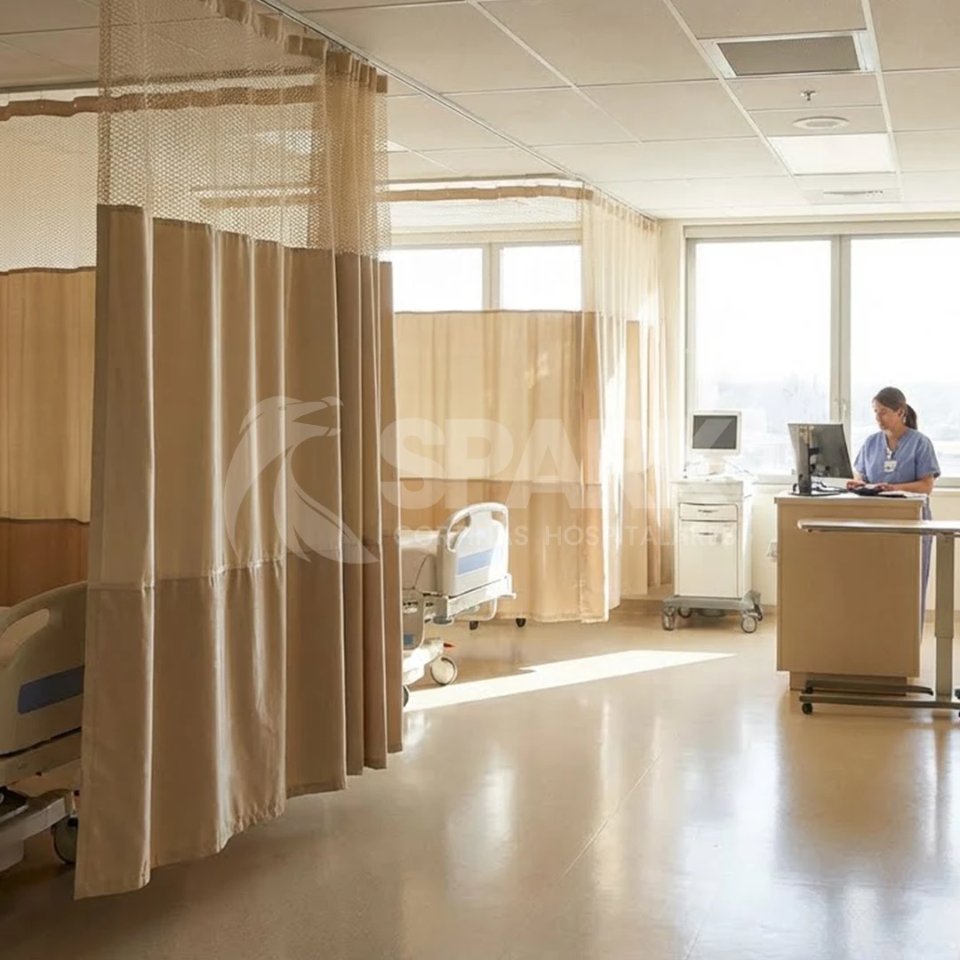Absolutamente. A segurança é um pilar da Spark. Nossos tecidos possuem tecnologia retardante a chamas (flame retardant), o que significa que, em caso de incêndio, o material não propaga o fogo e se autoextingue assim que a fonte de calor é removida. Isso é fundamental para atender aos laudos do Corpo de Bombeiros e garantir a segurança dos pacientes.